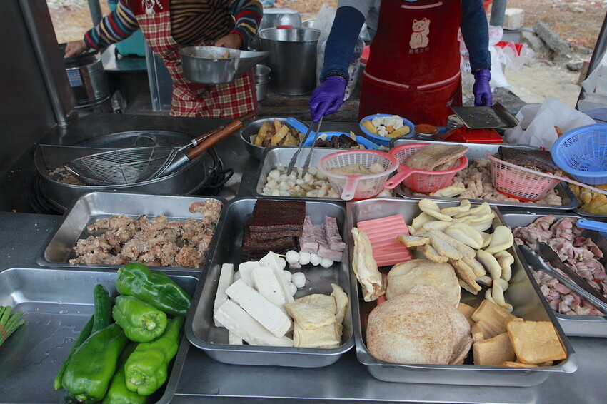 攤位有放置一些食材卻沒有標價,這裡鹹酥雞都是以份來計價,想知道價錢麻煩直接問老闆娘。