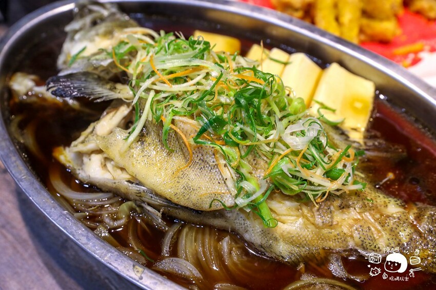 剛剛還在水族箱的龍虎石斑,肉質鮮甜Q嫩,魚皮好Q,豪邁青蔥加上調味,鹹香開胃,整個又想來一碗飯了!(但其實很飽啊~