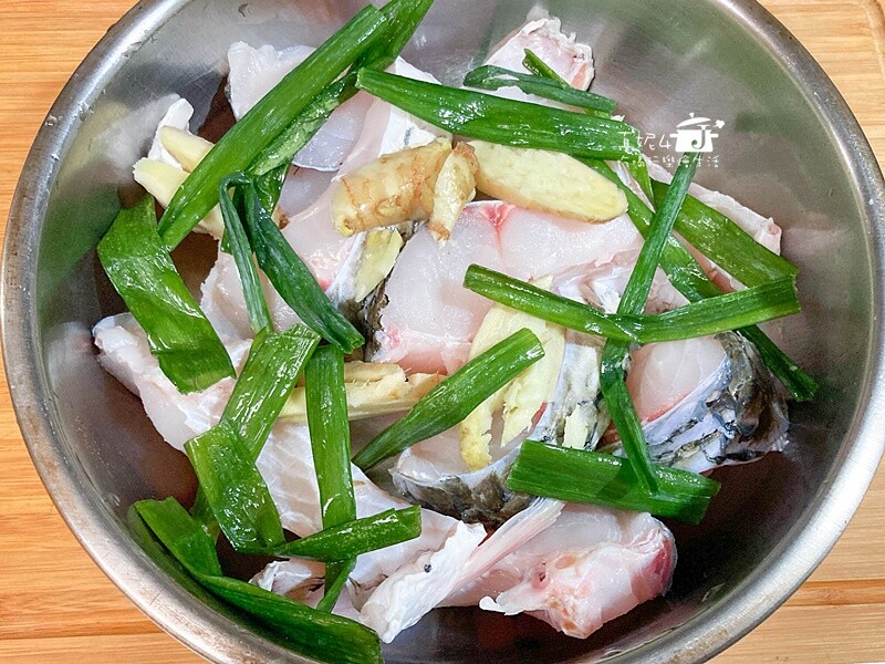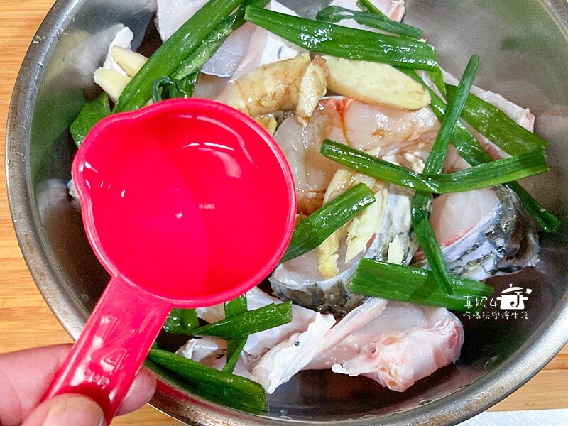 1.草魚(請魚老闆幫忙切斜片)洗乾淨擦乾水分後加入蔥薑酒抓勻醃泡3小時