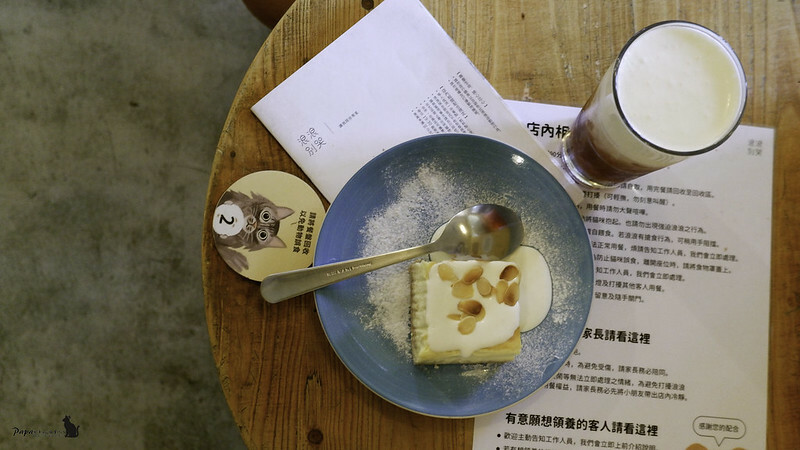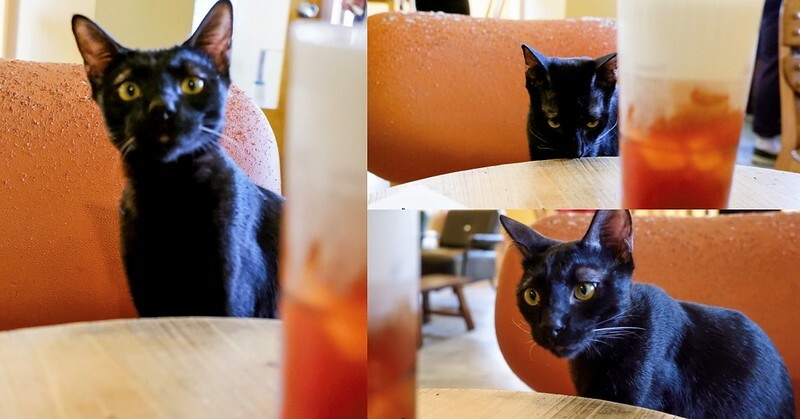 老闆提醒離開座位,桌上若還有食物記得蓋上蓋子!!貓會偷吃….