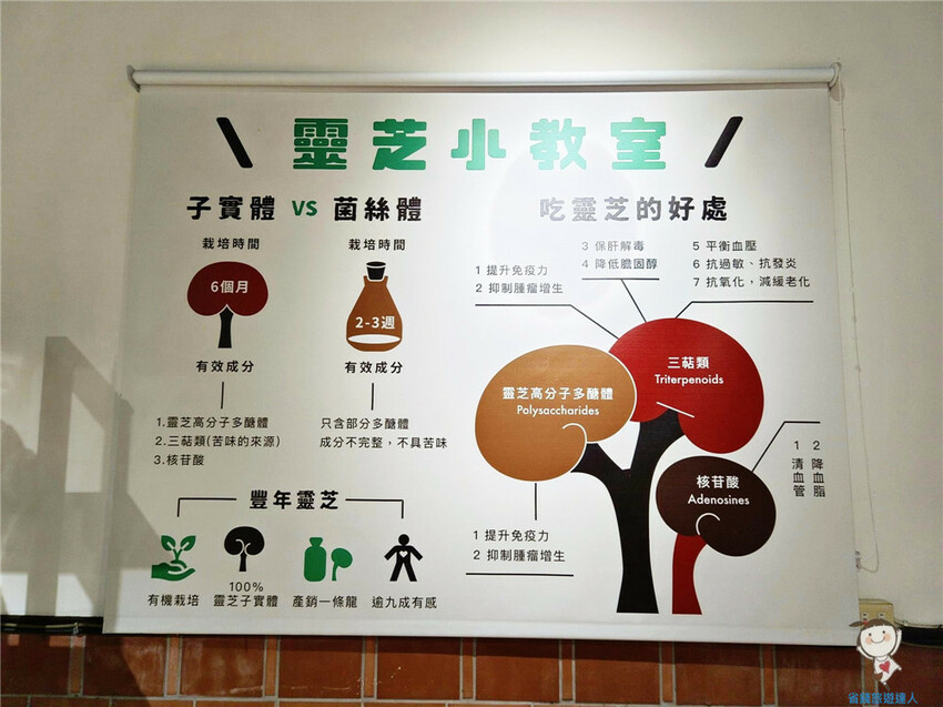 靈芝對人體有許多好處,豐年農場還特地製作了一幅海報,讓人一看就能一目了然