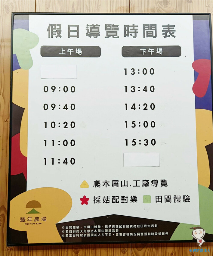 這張海報就是豐年農場的假日導覽時間表,分成上下午的場次