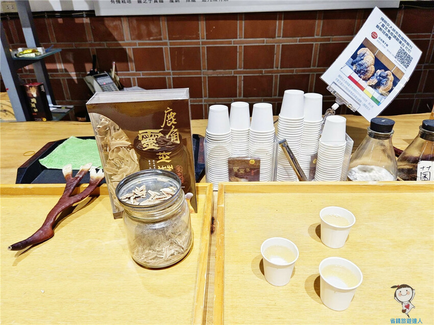 這裡有免費的鹿角靈芝茶讓人試飲,不過靈芝茶喝起來的口感挺獨特的