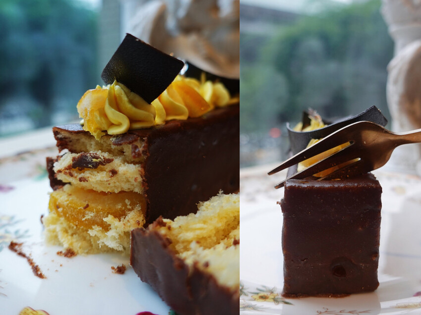 橙香巧克力,則是以清香的柳橙蛋糕體,搭配百香果與柳橙奶餡,外層巧克力則帶些脆皮濃郁口感,夾層還能吃得到柳橙果乾,整體風味跟口感都滿豐富。
