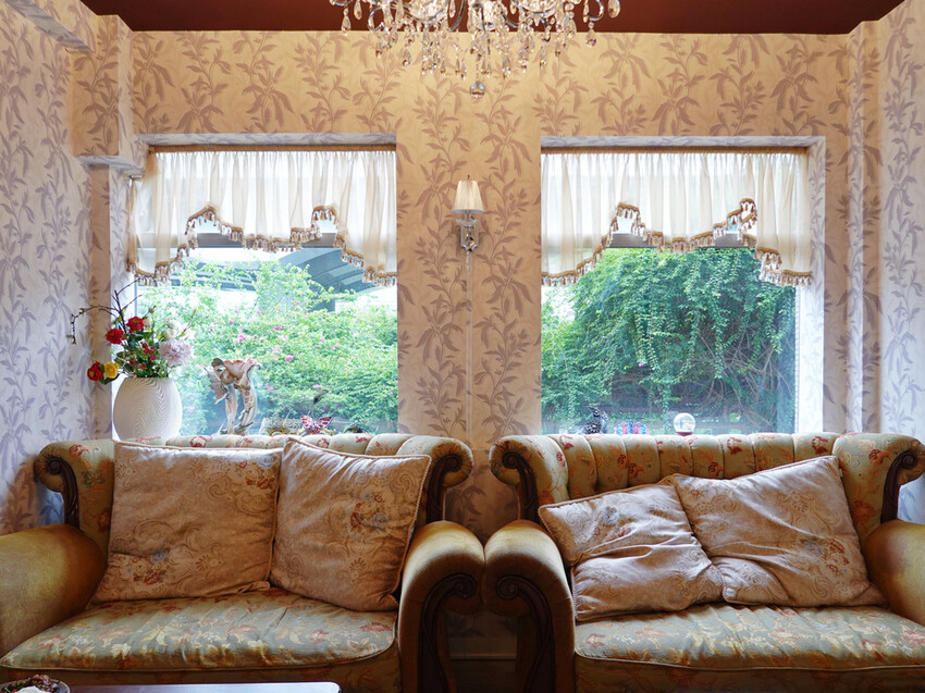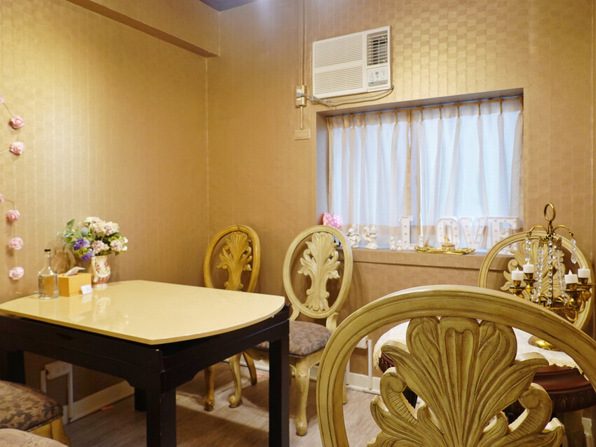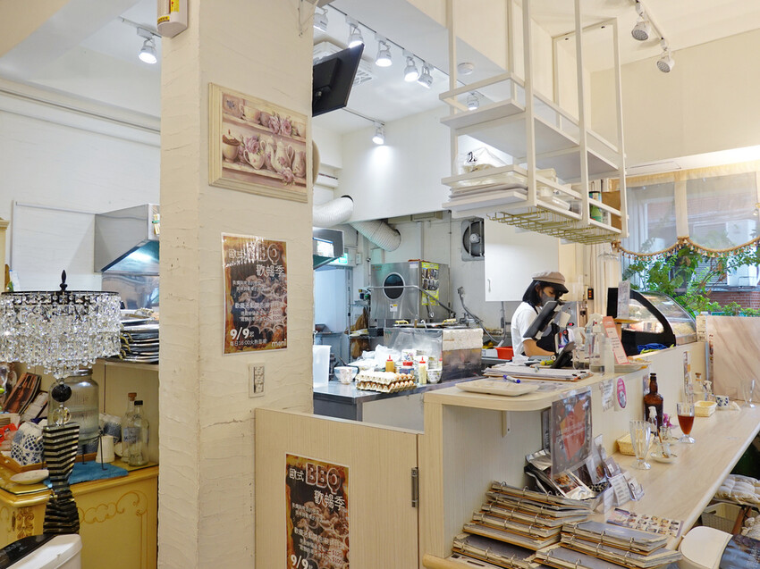 「Moni咖哩」一樓主要是半開放式廚房、吧台及座位區。店內承襲歐式風情,再多了些浪漫與奢華,蕾絲、雕花、水晶等等元素,完全展露出老闆娘的公主少女心。