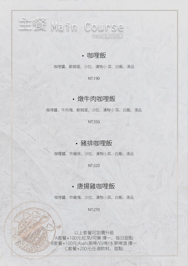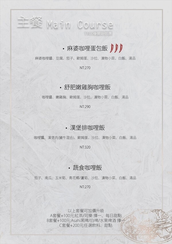 名古屋咖哩極具盛名,老闆小茉莉在日本求學時被深深吸引,回台後再加上母親的巧手,打造出連日本人都稱讚的天然濃醇香咖哩。