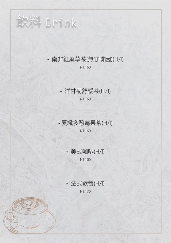 如果吃完了正餐,嘴饞還想吃些甜點,和好友聊聊天,「Moni咖哩」也推出了精品下午茶系列,是任選飲品跟甜點的組合。由於搭配蛋糕,所以在下午茶的部分就選擇了無糖茶飲。