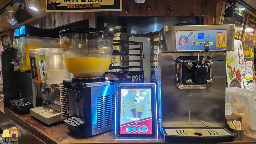 這家店屌打其他美食街的地方,除了價格之外厲害的地方就在於他有飲品雙淇淋吃到飽