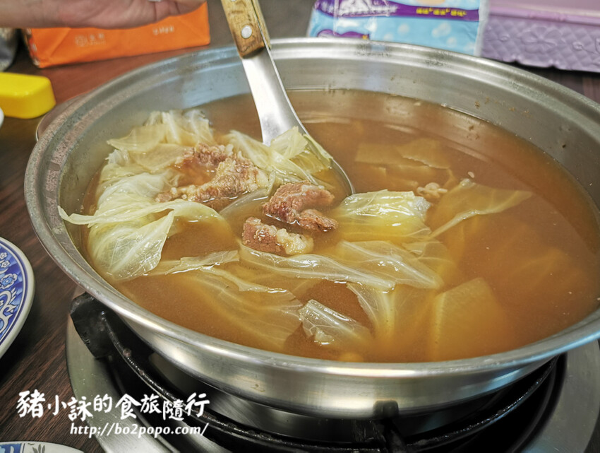 加了高麗菜、洋蔥跟蘿蔔薄片的湯底看似簡單,卻有著蔬菜的甘甜。