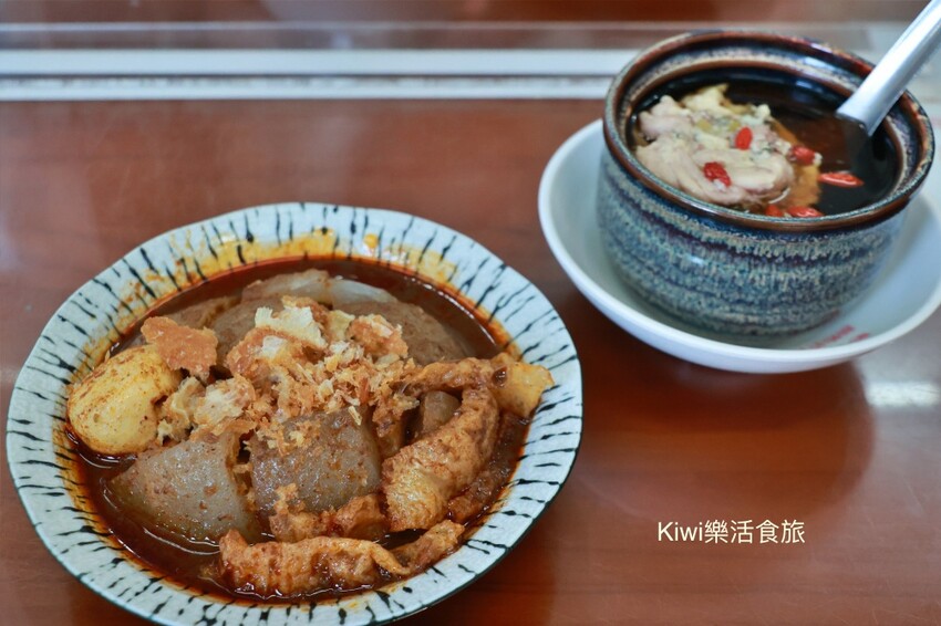 彰化關帝廟前有家超品燉露、蘿蔔糕,很飄香的排隊老攤看似平淡無奇,但樣樣都很講究,拿蘿蔔糕來說,