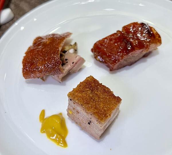 粵菜燒味前菜:冰燒三層肉、叉燒、脆皮乳豬滋味撩人,