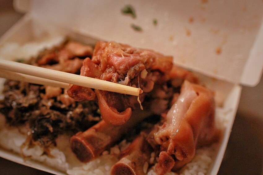 據說開業迄今已超過50年的阿賜豬腳,就只有營業晚餐時間且從一開門做生意到歇業關門前,湧進的人潮從沒間斷過,阿賜豬腳也是在地人都很推薦的在地平價美食。排隊等候餐點的時候,真的要誇獎店家的服務態度,親切又熱情總是笑臉迎人,外帶回去享用的梅干豬腳飯,真的好推薦。梅干菜不會太鹹且帶點甜味,吃起來挺開胃;豬腳軟嫩但不軟爛,醬汁也很下飯,榜哥吃完頻點頭比讚。