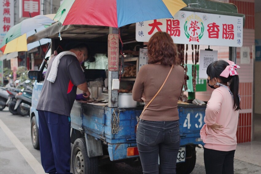 榮記古早味大腸香腸在古坑市區算是老字號的攤車,販售的品項蠻多,有大腸(米腸)、香腸、滷大腸、包心油、豬肺,還有假日限定的軟管、脆管等,重點是價位都不算高。