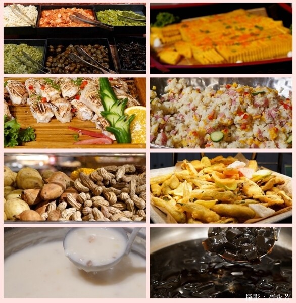 為推廣健康飲食,生菜沙拉區品目令人目不睱給;海鮮區多以汆湯沾調味料,減少油脂及調味料的攝取,相對地,也代表餐廳對食材新鮮度有相當的自負。許多道地的古早味,讓上了年紀的人回味不已;異國料理也不遑多讓,這次驚喜的看到不少日式漬物,和義式蔬食,可滿足饕客各種需求。食材的檔次高,新鮮度高,用料毫不手軟,一泊二食,光是這二食的價值,就物超所值了。