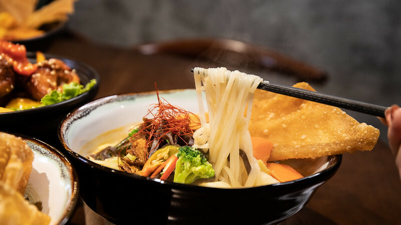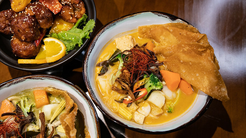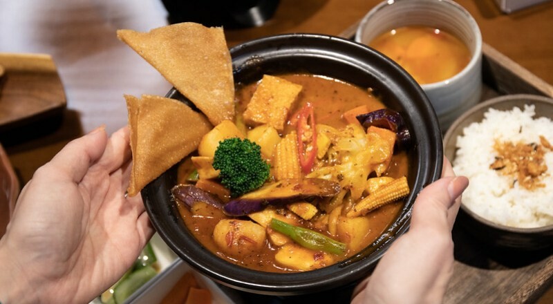 用料也太膨湃了,酥炸脆脆的麵皮搭配紅白蘿蔔豆腐玉米筍與各類蔬菜!綠咖哩湯汁本身還伴隨濃郁椰香