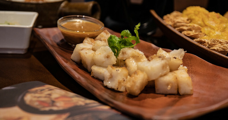 說穿了就是超軟嫩的台味蘿蔔糕,混搭猴頭菇(細碎)隱藏在蘿蔔糕當中單吃很台!沾醬則又是另種風味