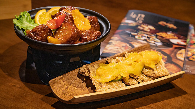 隨著餐點一道道上桌!首先登場的是這兩位..植物肉排骨X黃金泡菜炸豆皮