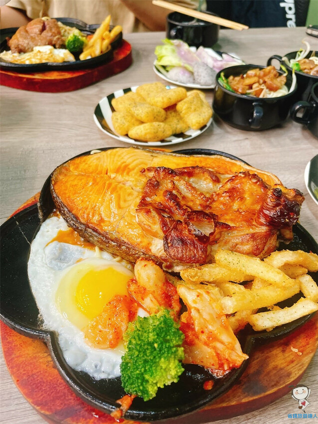 除了牛排,還包括鐵板麵,薯條,太陽蛋和青花菜