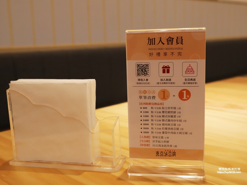 加入東京純豆腐高雄SOGO店會員,可以累績紅利點數兌換,更有入會禮、生日禮、問券禮