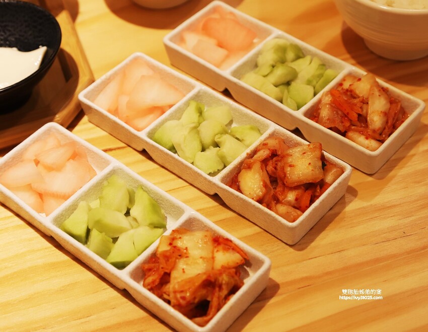 來用餐的客人都有一份不同口味三種小菜,不可以無限續用,只有白飯可以。