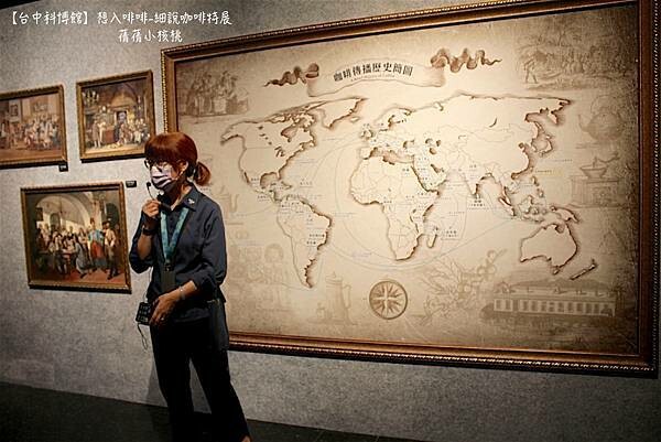一入門除了蒨蒨身後有如網美拍照打卡的『咖啡傳播歷史簡圖』外,更以巨大的咖啡樹來細說咖啡豆和咖啡樹的歷史起源。
