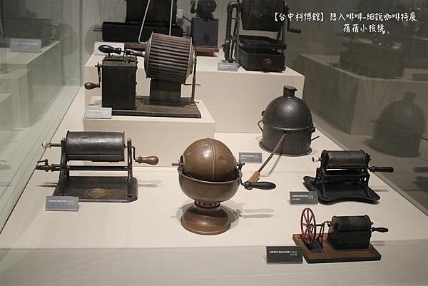 說真的,看了這麼多琳琅滿目的咖啡機具,光是看機具底下小小的幾行介紹,根本燃不起艾琳對於這個特展的熱情,雖然花了一個多小時跟著解說導覽介紹關於這個特展的源起、咖啡豆的歷史、烘豆機的淵源、和各種咖啡機具的由來,在進行了一連串的深度導覽後,艾琳不只聽得如癡如醉,也加深了對咖啡豆、咖啡樹、磨豆機、烘豆機、和咖啡機......等各種咖啡機具的認識和暸解。