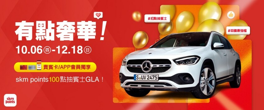 扣200點可獲得兩次,依此類推,就有機會獲得「THE NEW MERCEDES-BENZ GLA180」乙台。(價值1,860,000元)