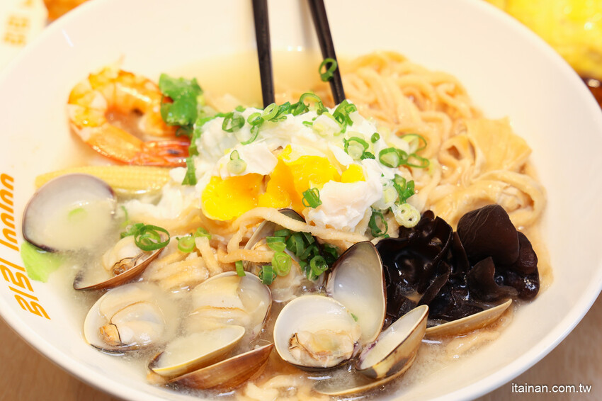 蛤蜊控、蛤蠣控照過來~喜歡吃蛤罵的朋友必點這碗算算蛤蜊鍋燒,一碗裡面放了滿滿的蒜頭,還有數量不少的蛤蜊,整碗都是蒜味與蛤蜊的精華,湯頭多了蒜味提出鮮甜味,這碗湯更是清甜許多,讓人不知不覺整碗就喝光光,尤其麵條吸飽了湯汁更是讓人不自覺整碗光速完食。