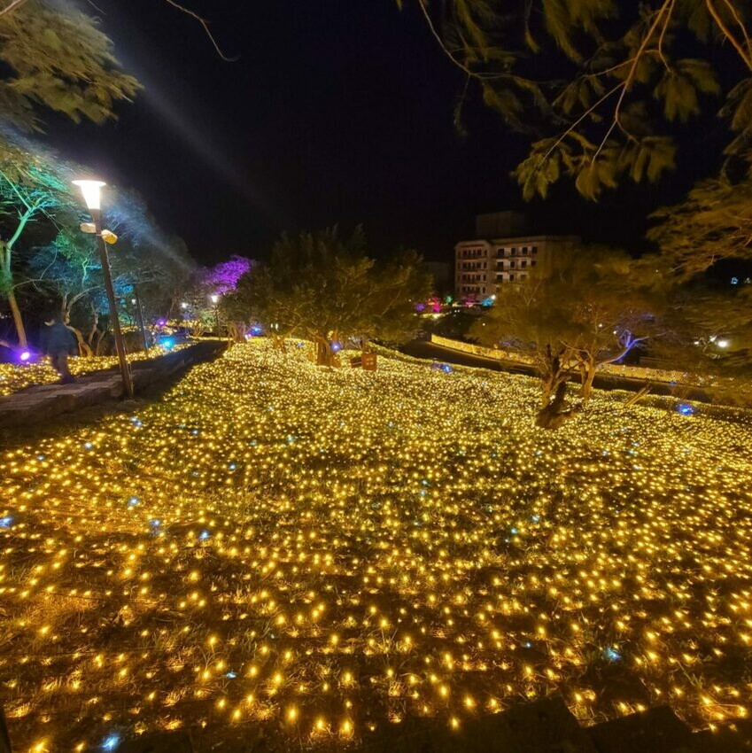 大型燈海與打卡裝置,視覺效果超級唯美浪漫,引起一波打卡熱潮。入夜後的溫泉公園,相當適合情侶約會走走,或是閤家泡足湯放鬆,一邊體驗溫泉魅力,還可以一邊賞燈、看夜景、散步溫泉公園唷!
