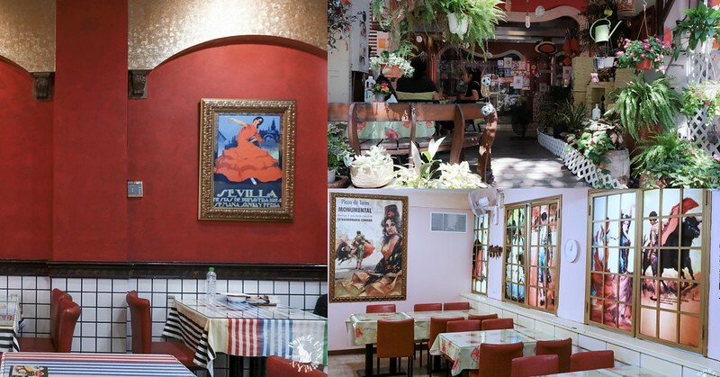 庭院有著各種植物,店內座位區有一樓紅色鮮明牆面掛上西班牙式女郎海報,B1更是洋溢的熱情十足的窗型畫作