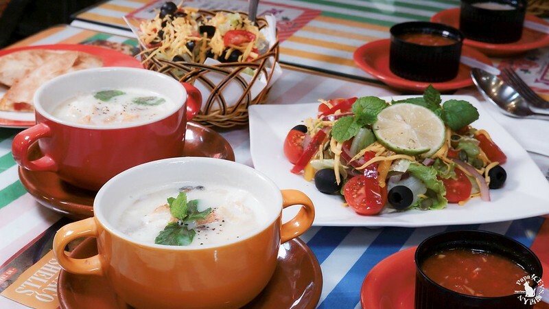 餐點內容:招牌特製沙拉/法式濃湯/西班牙起司捲/墨西哥塔克/巴塞隆納海鮮燉飯,另有甜點飲料