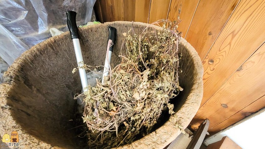 在小攤車的旁邊可以看到曬乾後的原型仙草就擺在旁邊