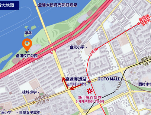 地鐵3∙7∙9號線高速巴士客運站8-1號出口出站後,徒步約16分鐘