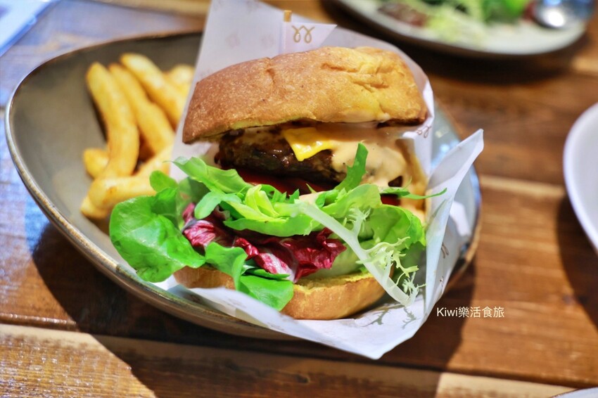 LeeLis亞美利加起司狼牛堡套餐(附薯條),厚實多汁的肉排搭配滿滿生菜,營養均衡。