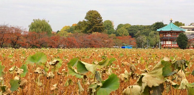 論上野公園最佳散步景點,莫過於不忍池。不忍池周長約2公里,總面積約11萬平方米,池中央有座慈眼大師天海紅創建,祭祀辯才天的辯天島(中之島)。池被步道土堤分為三部分,分別是被蓮覆蓋的蓮池、可划船的船池、飼養鸕鶿的鵜池。繩文時代,此地是東京灣的海灣。之後海岸線逐漸後退,逐漸變成湖。不忍池的名字來源於上野台地與本鄉台地(向岡)之間的地名「忍丘」。
