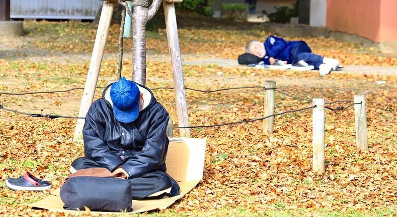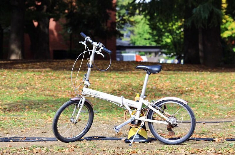 公園綠地、落葉間隨處可見的自行車和打盹的旅人相映成趣。