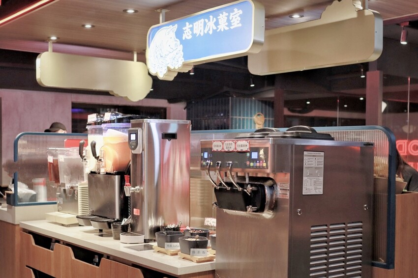 而冰品、飲品區還取名為志明冰菓室,提供紅茶、忘情水、古早味酸鹹甜、紅心芭樂冰沙、熱茶、冰淇淋等,冰淇淋是豆奶冰淇淋,可自行搭配配料。