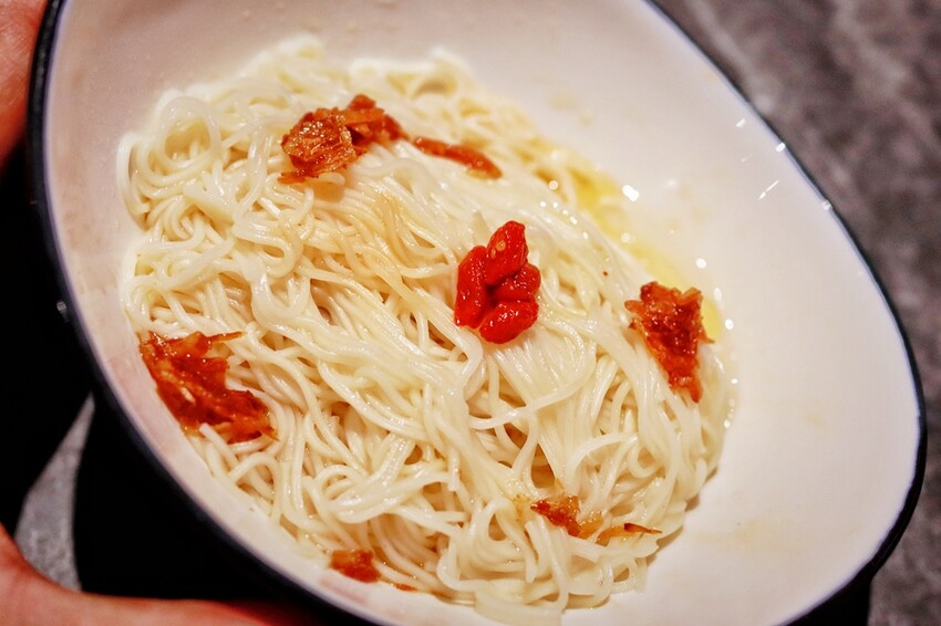 有白飯、洗選單+5元、王子麵+10元、日曬油蔥麵線+20元、銷魂雞肉飯+25元可以選擇,而我們選擇白飯跟王子麵。