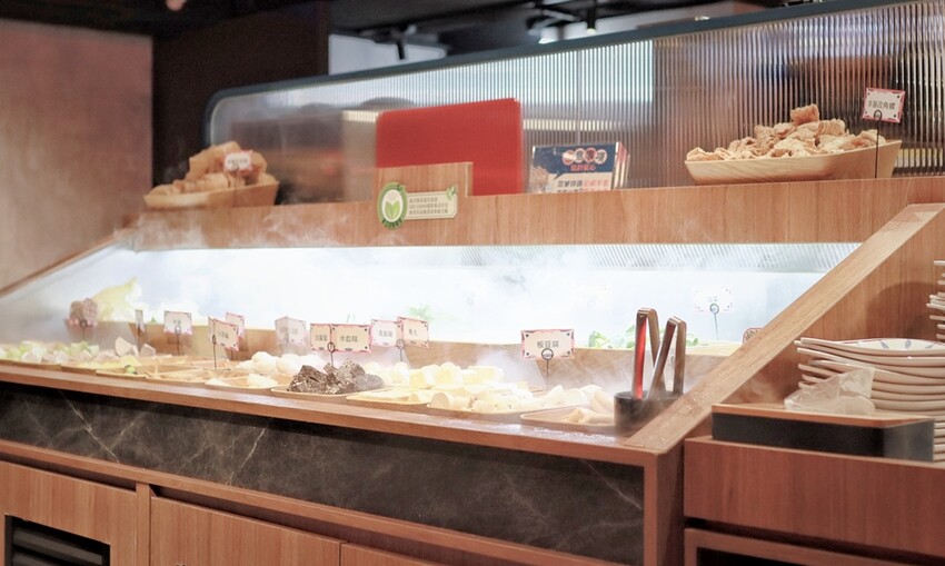 有多樣的時蔬、火鍋配料可以自行夾取,夾取時要記得戴手套喔!