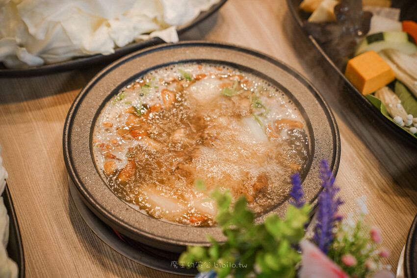 排骨酥是店家每日新鮮製作,搭配的湯頭是柴魚高湯,排骨酥火鍋真的有夠到位,我先喝了一口湯,胡椒香氣陣陣撲鼻而來,媽呀!是好喝的湯,湯頭有胡椒香還有蒜香,味道也不會死鹹油膩,很清爽但卻濃厚。