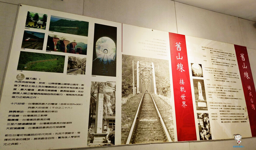 只好先拍牆上這個舊山線鐵道圖說,去年來搭過[苗栗舊山線鐵道自行車]
