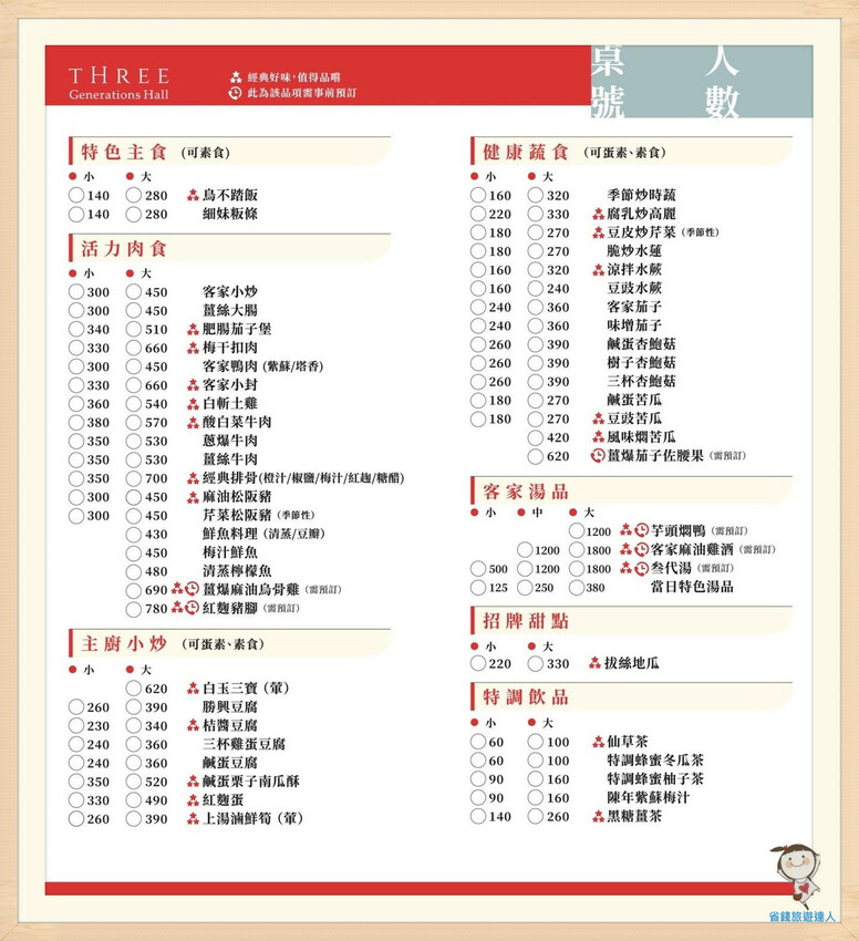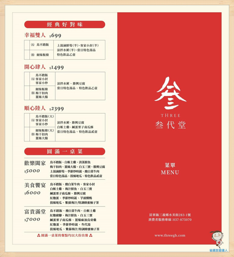 叁代堂菜單只有二頁,其實還蠻簡單的,第一頁是他們供應的合菜