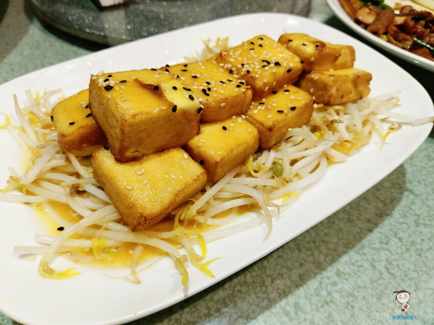 炸到金黃色的豆腐,再用他們特製的桔醬來調味,最下面再鋪一層豆芽