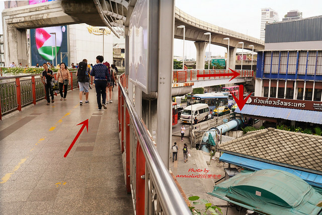 從BTS-勝利紀念碑站4號出口出站後沿著天橋(繞過紀念碑)一路走過來很方便!