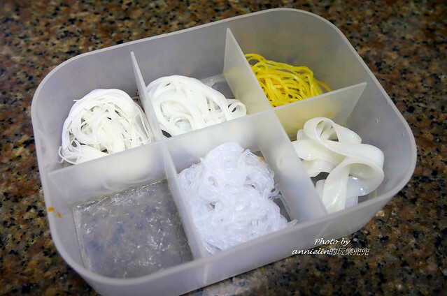 有五種麵條可以搭配,米粉、麵線、 麵條 、粉絲、粿條,