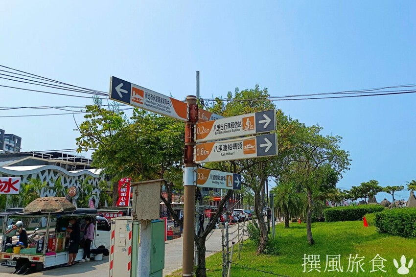 從渡船頭站下車後,很快就能步行抵達八里左岸公園,一片絕美的八里水岸,吹海風吃美食非常愜意,這裡也有很多打卡的裝置藝術和沙灘,走更遠一些還能抵達挖仔尾自然保留區,這裡騎腳踏車是很好的選擇,假日之際YouBike可能會供不應求,可以考慮附近的腳踏車租借,也能體驗親子協力車。需要注意的是,八里水岸遮蔽物少,所以烈日之際很容易曬傷,防曬衣或防曬乳一定不能少!