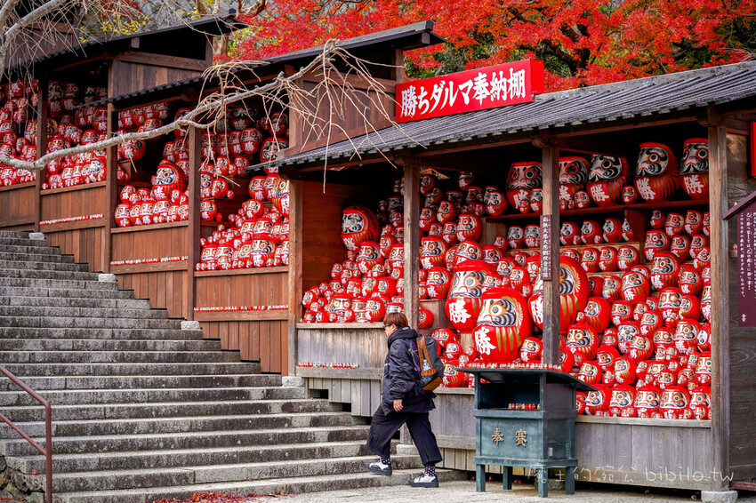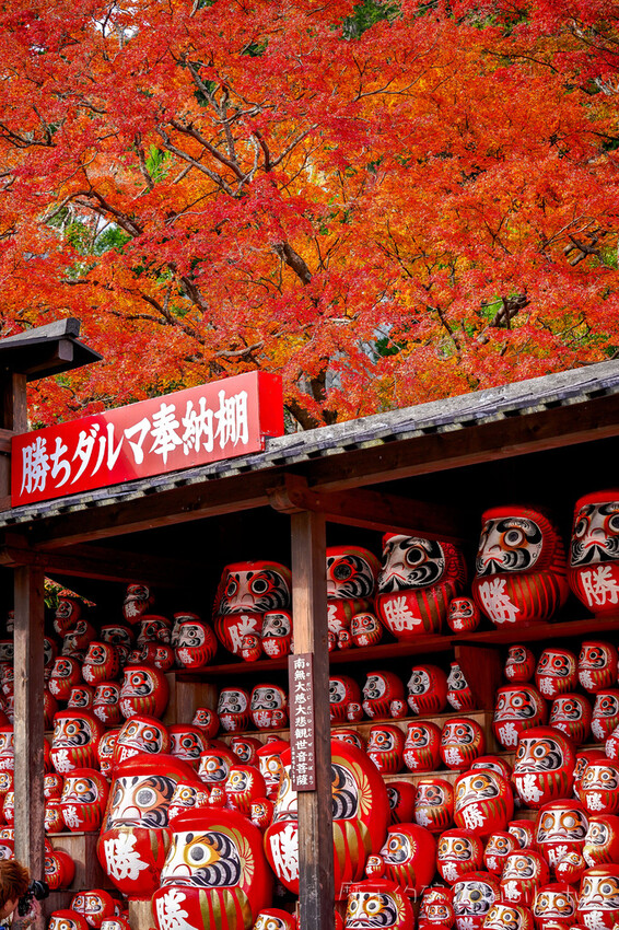 因為網路上一張滿滿達摩配上楓紅的照片,讓我專程前來,這裡就是讓許多遊客拍超多照片的大卡點,達摩奉納堂,大大小小的達摩聚集在此,站在現場真的會有一種氣場強大的感覺。