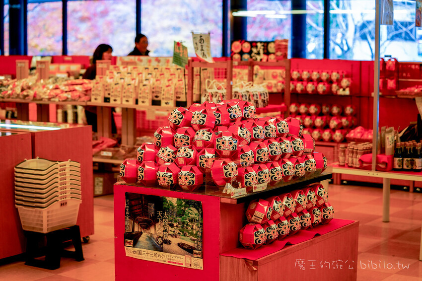 下山後,當然就要去入口處的商品店看看有什麼可以買,商品店除了有許多達摩商品,還有一些伴手禮,另外這裡也有簡單的輕食咖啡茶飲,若時間來得及,不妨可以坐在這喝杯咖啡熱茶賞賞楓也行,再來是 在本堂購買的達摩像是沒有附坐墊的,所以我最後在商品店買了達摩的坐墊,這樣才是一套,總之 大家來到關西賞楓,除了安排京都賞楓外,大阪箕面勝尾寺也是我個人相當推薦的賞楓寺廟喔~