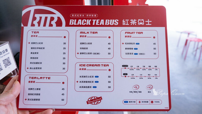 紅白顯眼的招牌簡單顯著 「紅茶巴士BLACK TEA BUS」,最讓人注目的公車站牌造型茶坊搭配售票口,招牌巴士紅茶就是大家記憶中的紅茶冰-老派茶飲新式喝法-主要也是外帶杯太潮,拎在手上就是一種時尚感!