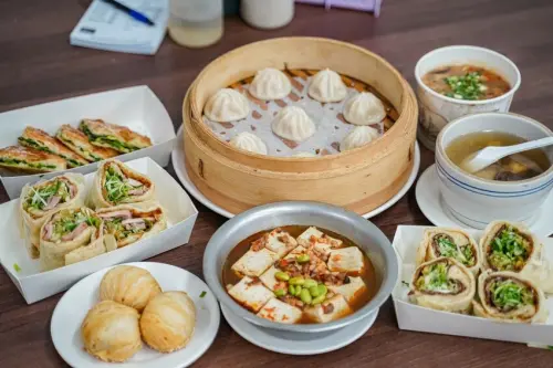 滿滿蔥花的金牌蔥油餅、蘿蔔絲餅、捲餅、小籠湯包,種類多樣豐富